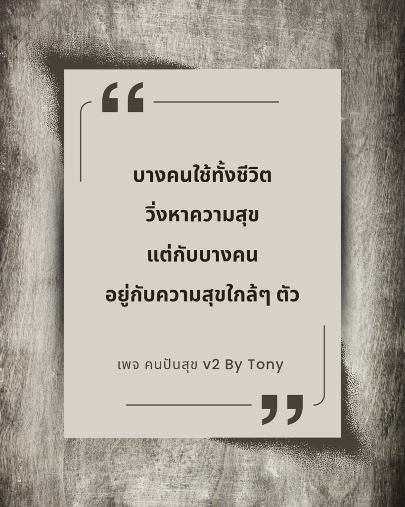 แต่ในความเป็นจริง ความสุข ไม่ได้มีรูปแบบตายตัว และไม่จำเป็นต้องยิ่งใหญ่หรือพิเศษเสมอไป